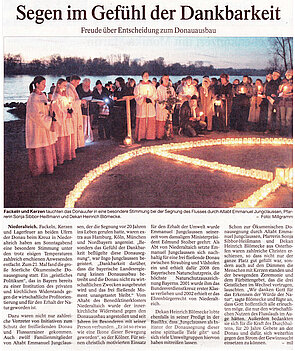 Nachdem Ministerpräsident Seehofer im vergangenen Jahr von den Staustufenplänen Abstand genommen hat, steht die diesjährige Donau-Segnung am 12. Januar unter besonderem Vorzeichen. Der 86-jährige Benediktiner-Mönch, als Abt im Ruhestand, hat ein wesentliches Ziel erreicht.